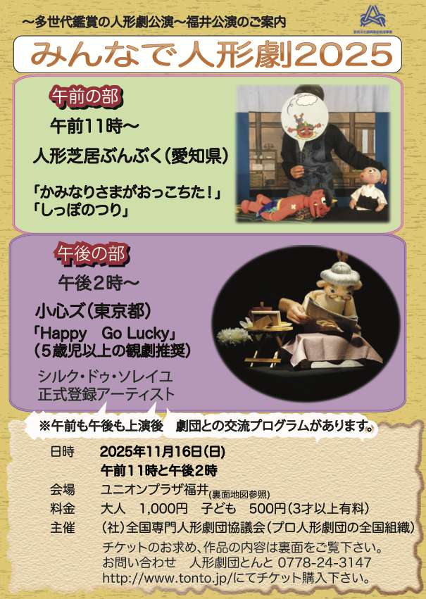 お問合せ・お申込み/人形劇団とんと TEL.0778-24-3147 http://www.tonto.jp/